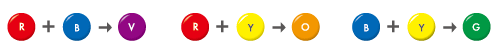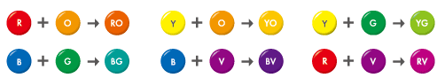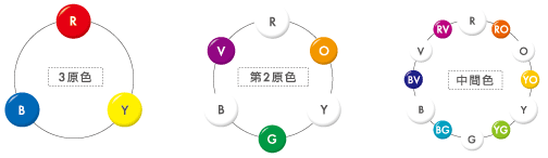 3原色の隣り合う色同士をミックスしてできる色を第2原色といいます。