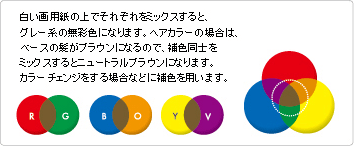 色相・明度・彩度、この3つを組み合わせることで、多くの色をつくりだすことができます。ヘアカラーの色を考えるベースとなります。