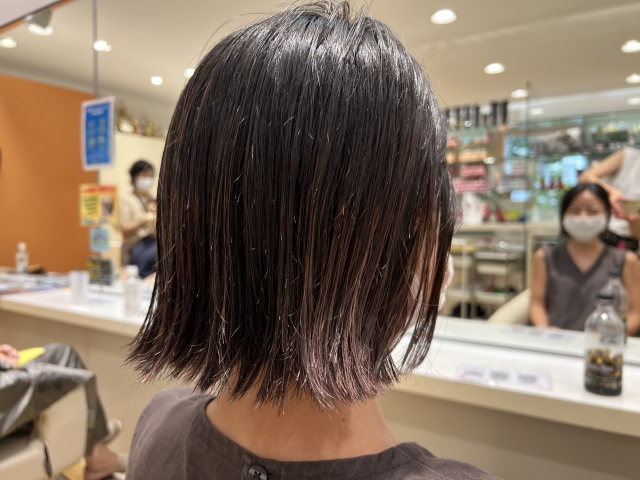 クールな印象の髪型なので、難易度の高いハイト―ンや暗髪にも馴染みやすいヘアスタイルです。